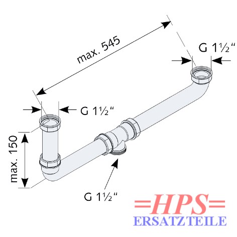 HPS-Ablaufverbindung 1½“ für Doppelspülenmit zentrischem Abgangund 1 Anschlussrohren 120 mmfür Doppelspülen mit unterschiedlich tiefen Becken